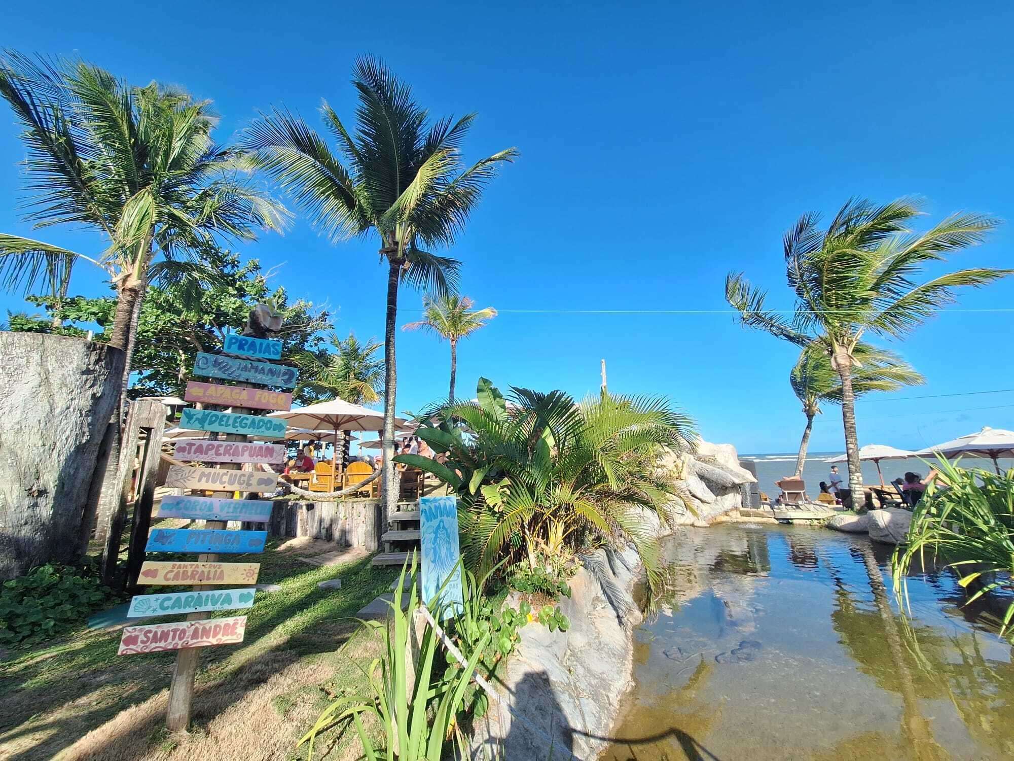 À quelques minutes seulement, Arraial d’Ajuda offre une ambiance plus paisible et bohème, avec ses ruelles colorées, ses falaises spectaculaires et ses points de vue à couper le souffle.